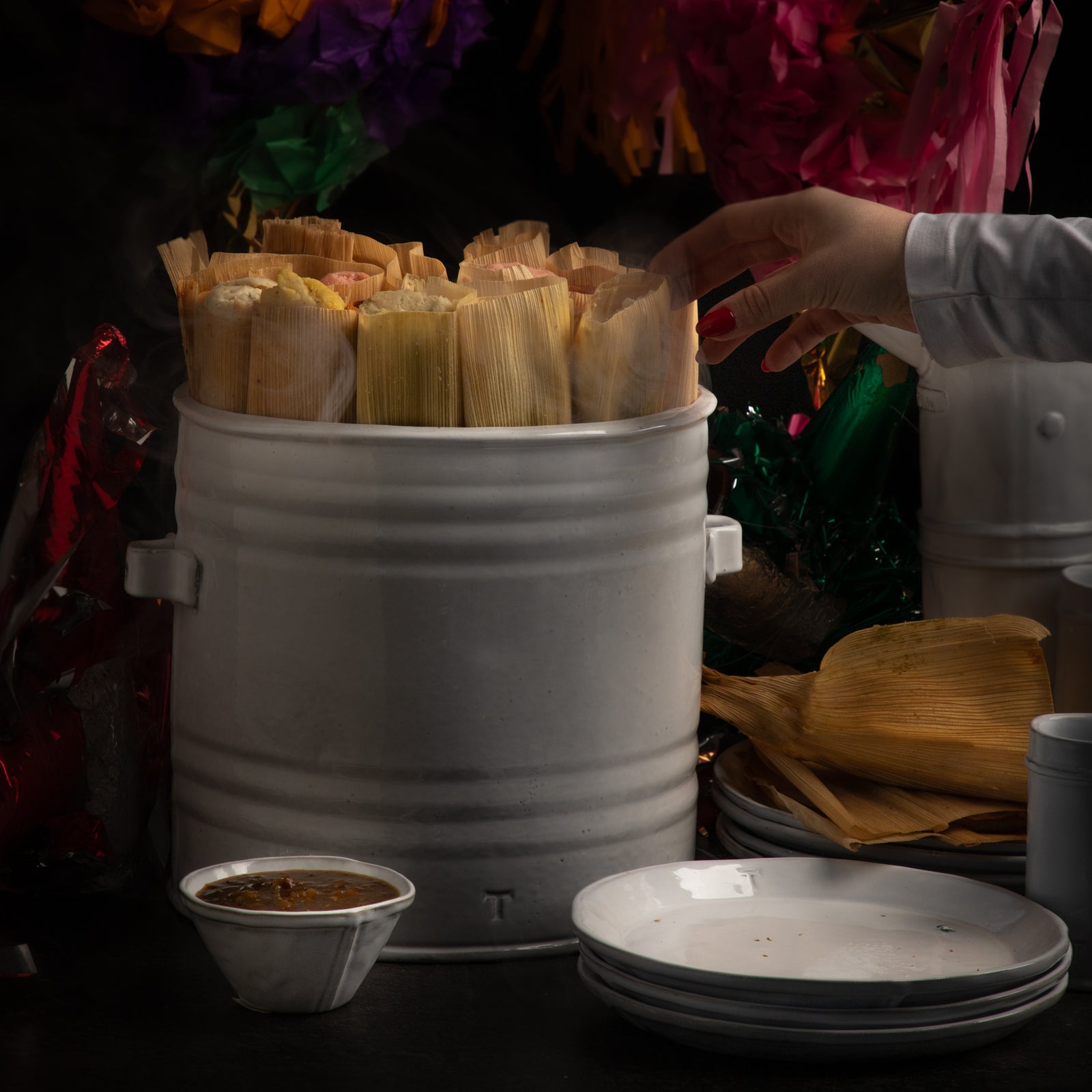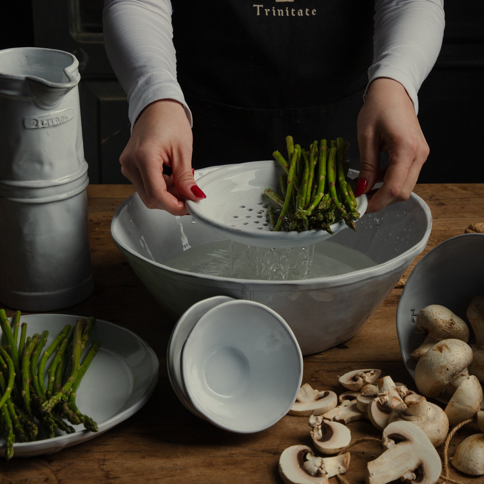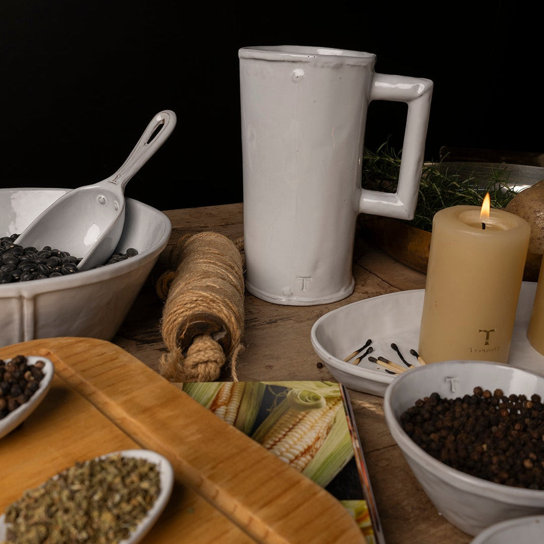 Esta colección hace un guiño a las antiguas cocinas mexicanas: el calor de las estufas mezcladas con el viento que entraba por los zaguanes; arriba, en el garabato, cacharros colgados.