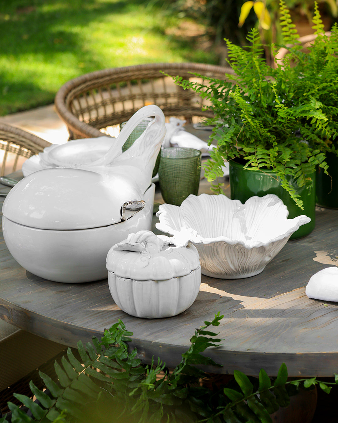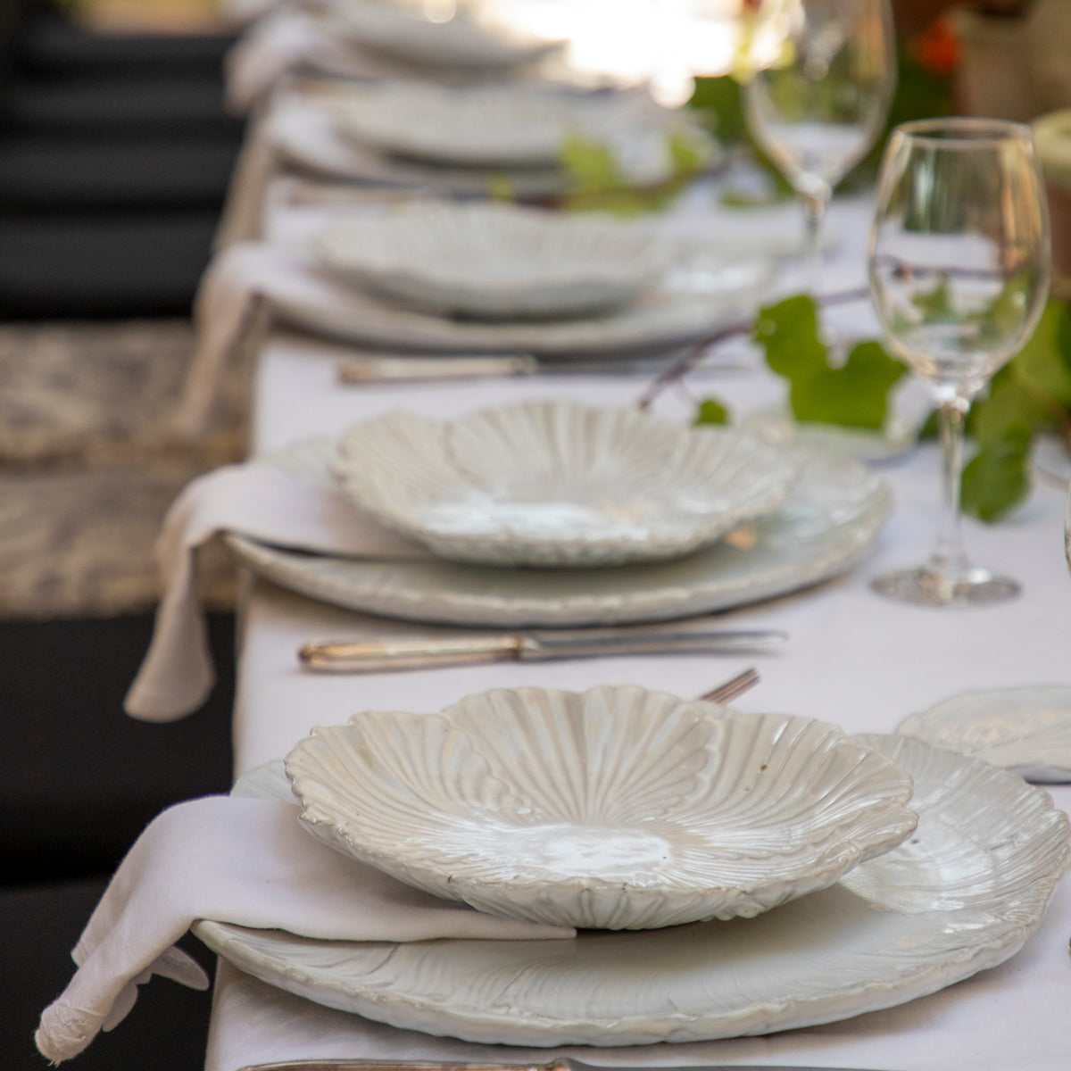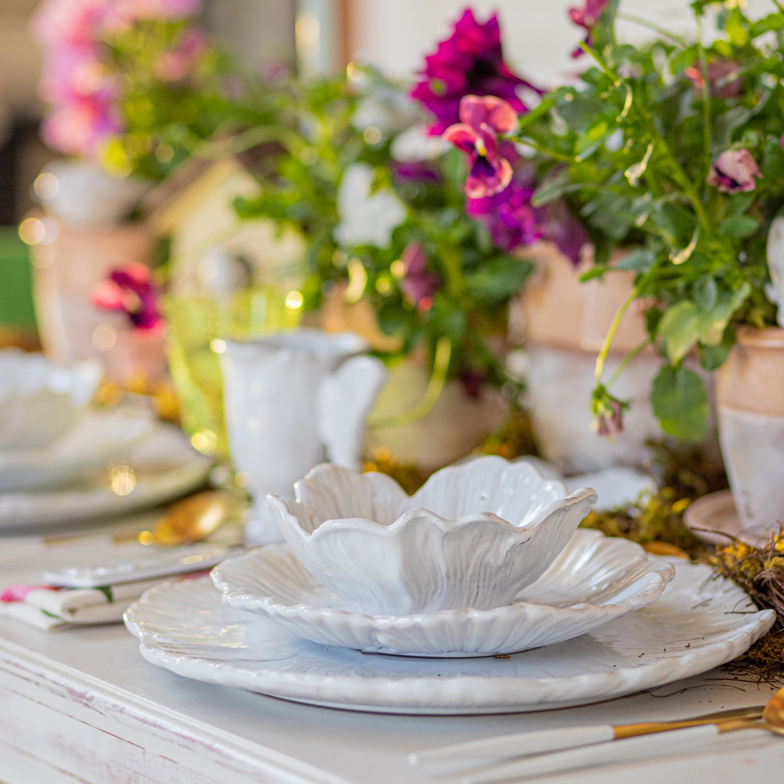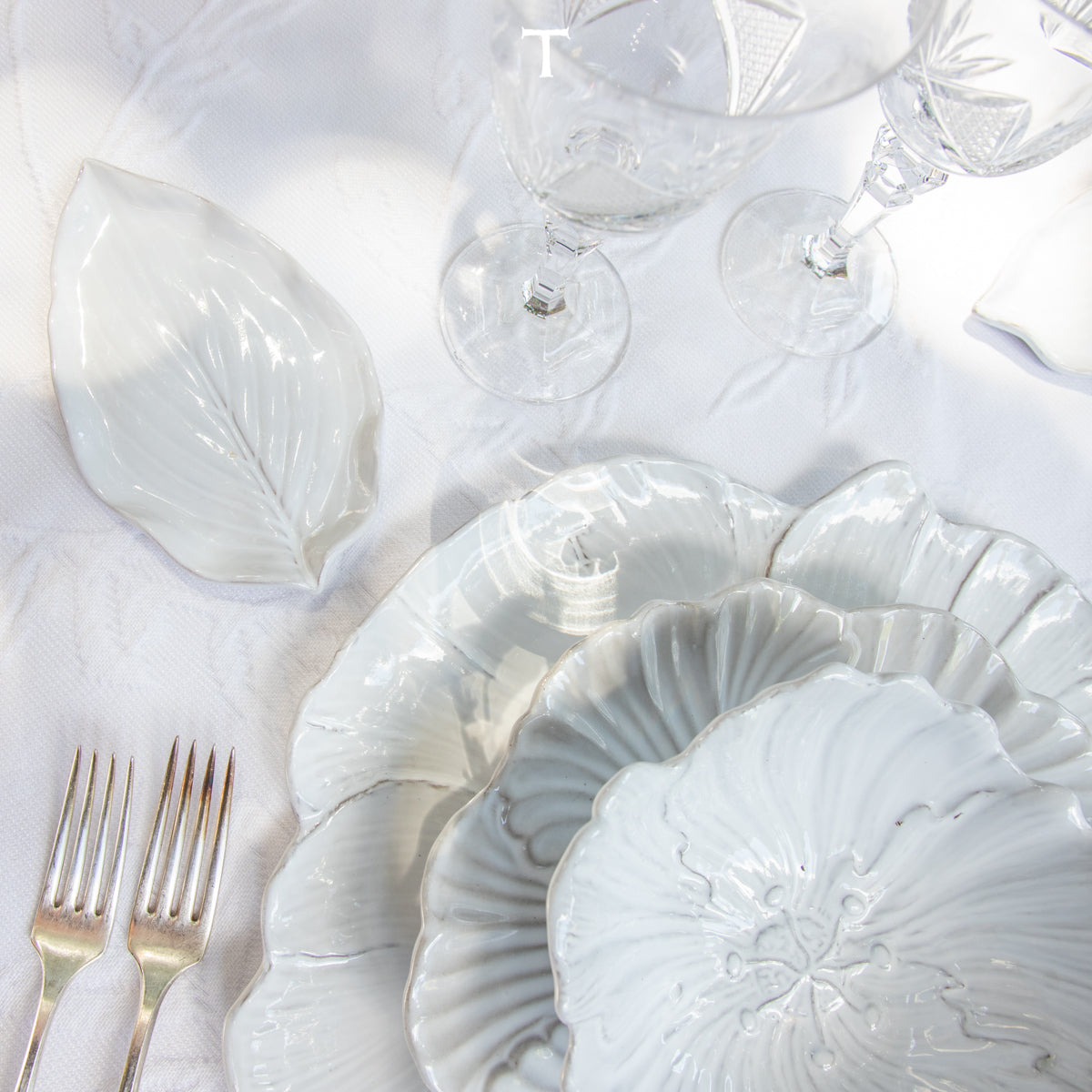 Colección inspirada en el florecer diario de la naturaleza, nos hace parte de ella y trasciende en cada mesa por sus líneas románticas y frescas.